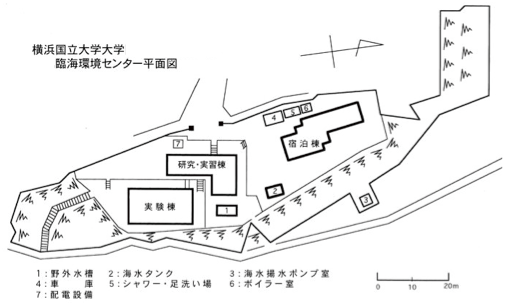 鉄筋平屋建(総面積252㎡)。第2実習室(セミナー室)。培養実験室、海水処理室、顕微鏡実験室、資材室、機器室などがあります。