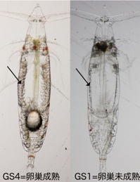 図. Eucalanus californicus成体雌の異なる生殖腺の発達段階.